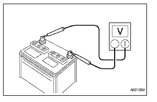 c. Measure the battery voltage between the negative (-) and positive (+) terminals of the battery.