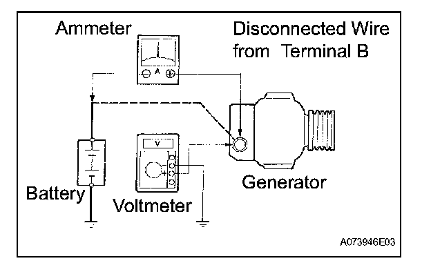 1. Disconnect the wire from terminal B of the generator and connect it to the negative (-) lead of the ammeter.