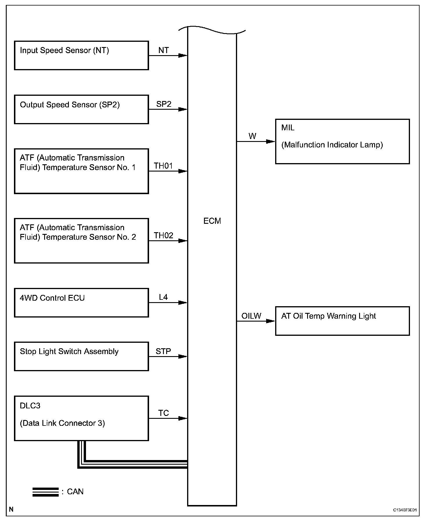 SYSTEM DIAGRAMThe configuration of the electronic control system in the A750F automatic transmission is as shown in the following chart.