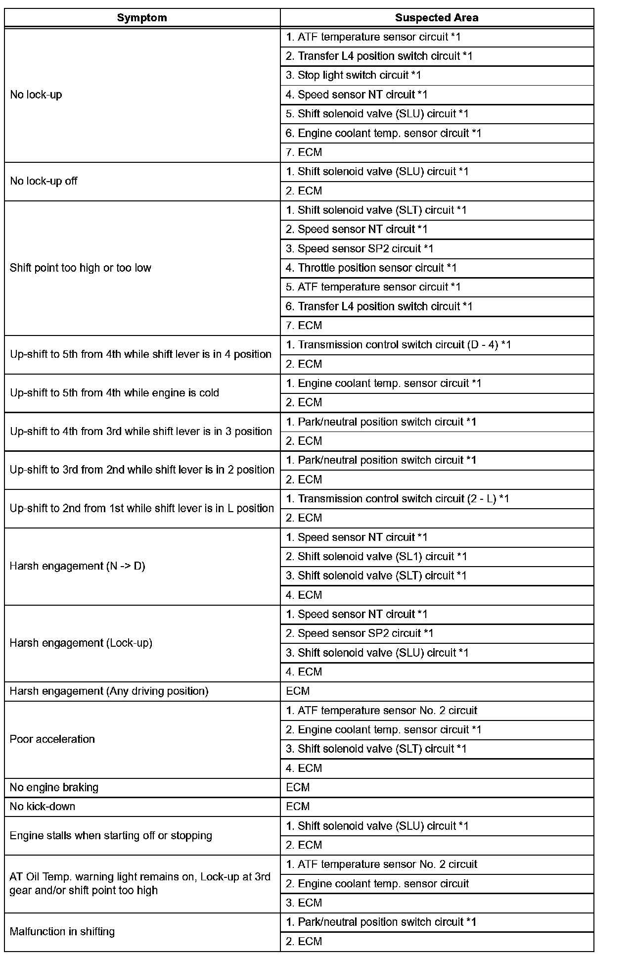 PROBLEM SYMPTOMS TABLEHINT: