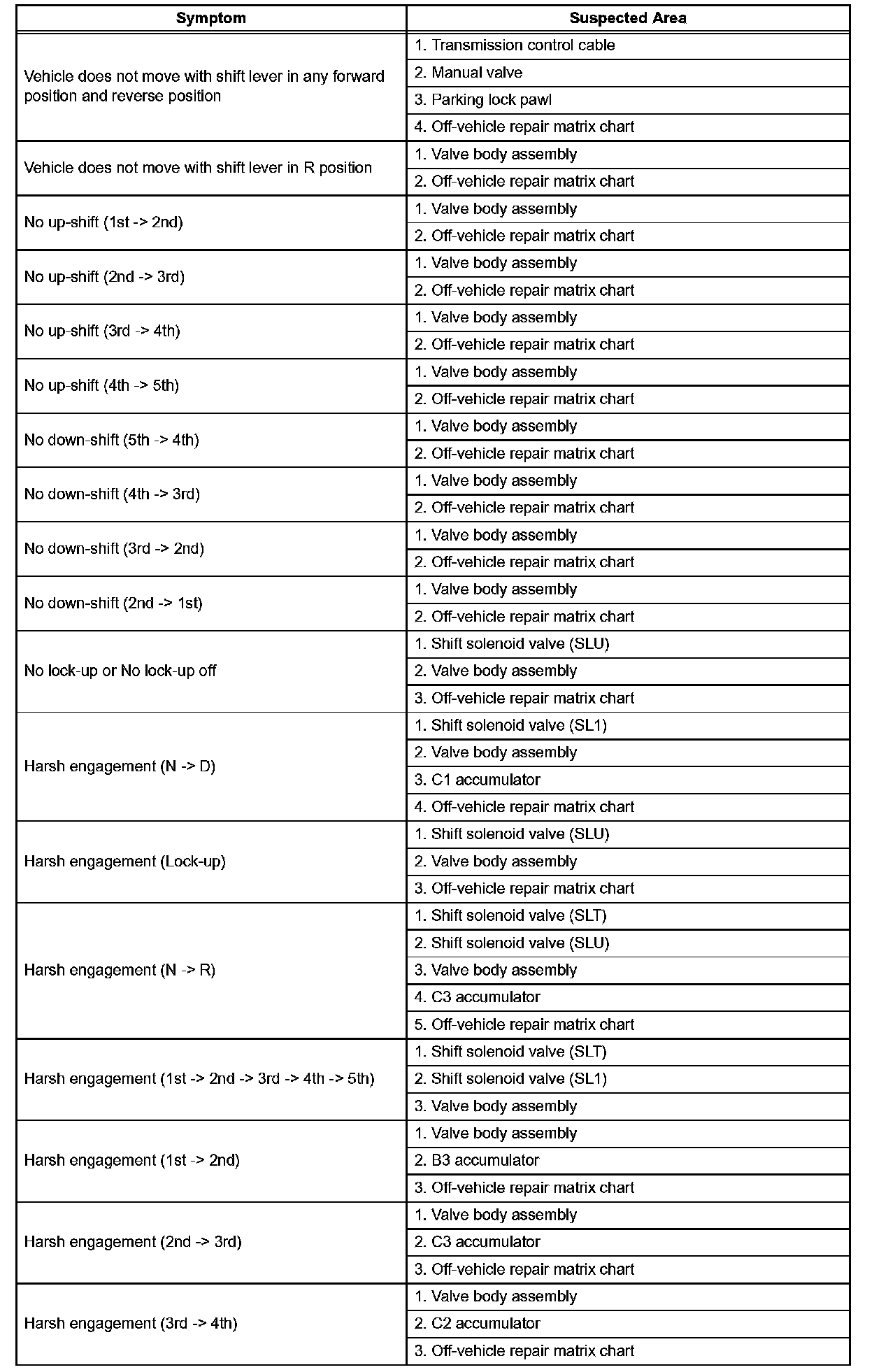 If the instruction "Proceed to next circuit inspection shown on matrix chart" is given in the flow chart of each circuit, proceed to the circuit with the next highest number in the table to continue the check.