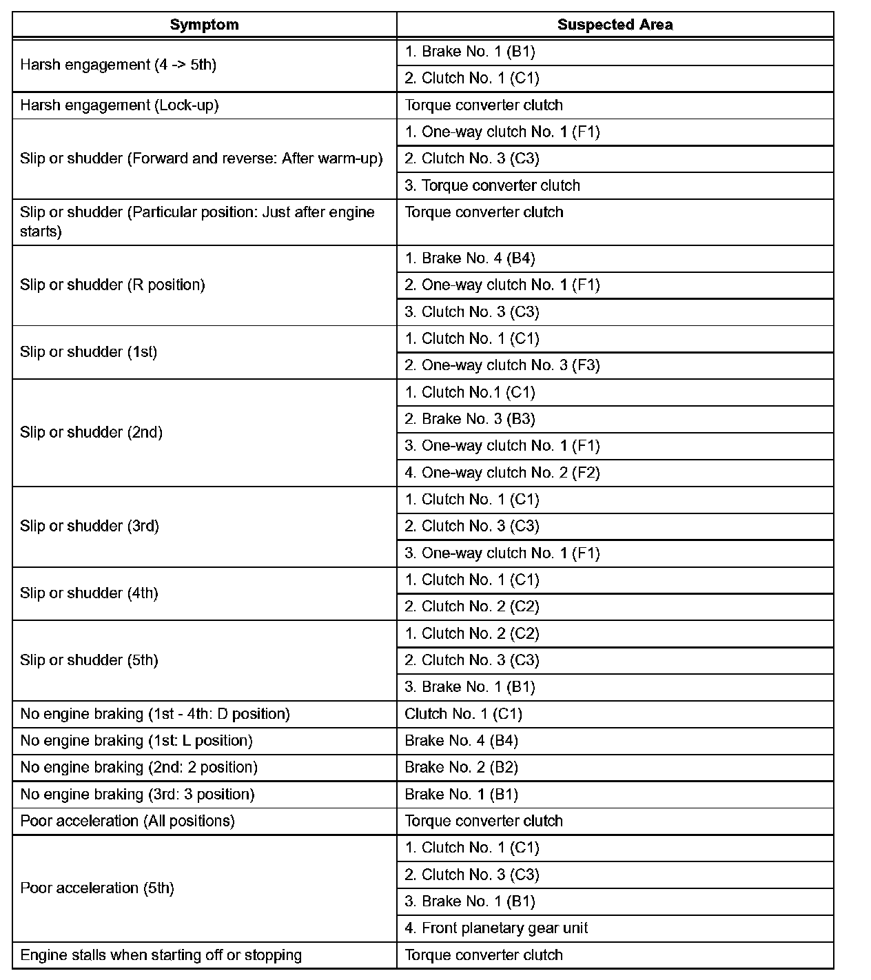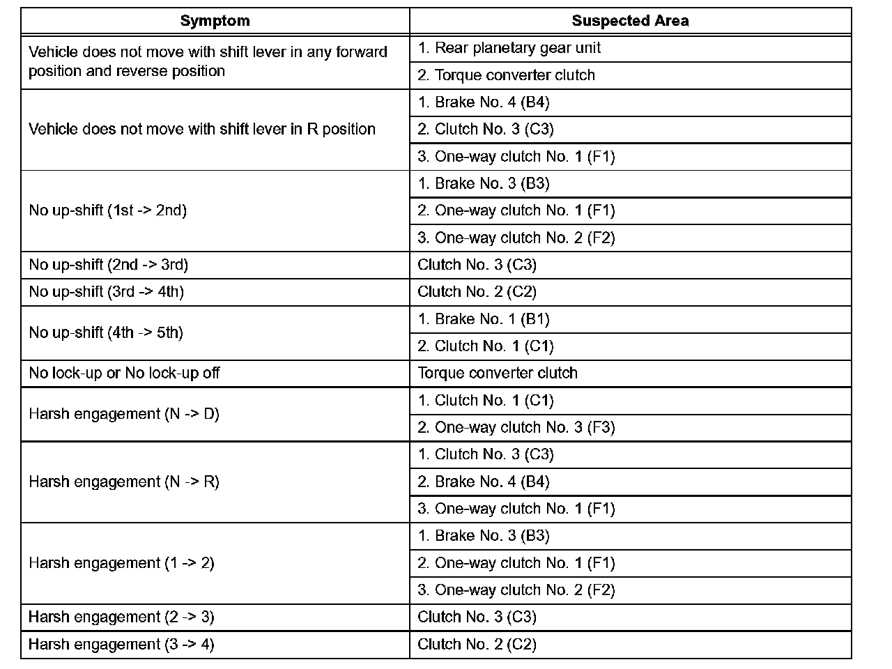 Refer to the table when the trouble cause is considered to be electrical.