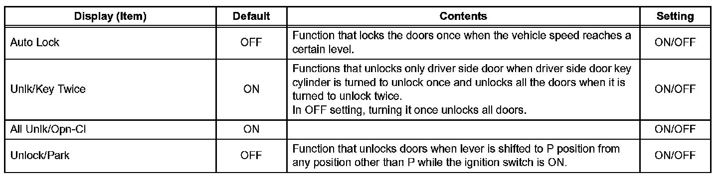 - To set function (Opening Driver's Door-linked Automatic Door Unlock)