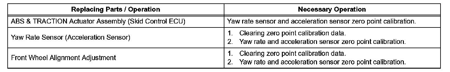 e. Using a check wire, perform zero point calibration of the yaw rate and acceleration sensor.