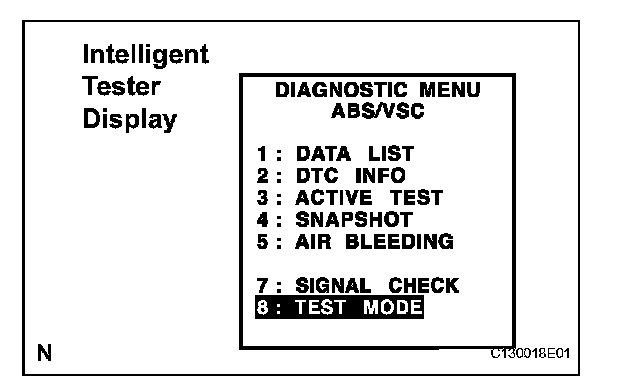 3. Check that the VSC warning light is blinking in TEST MODE.