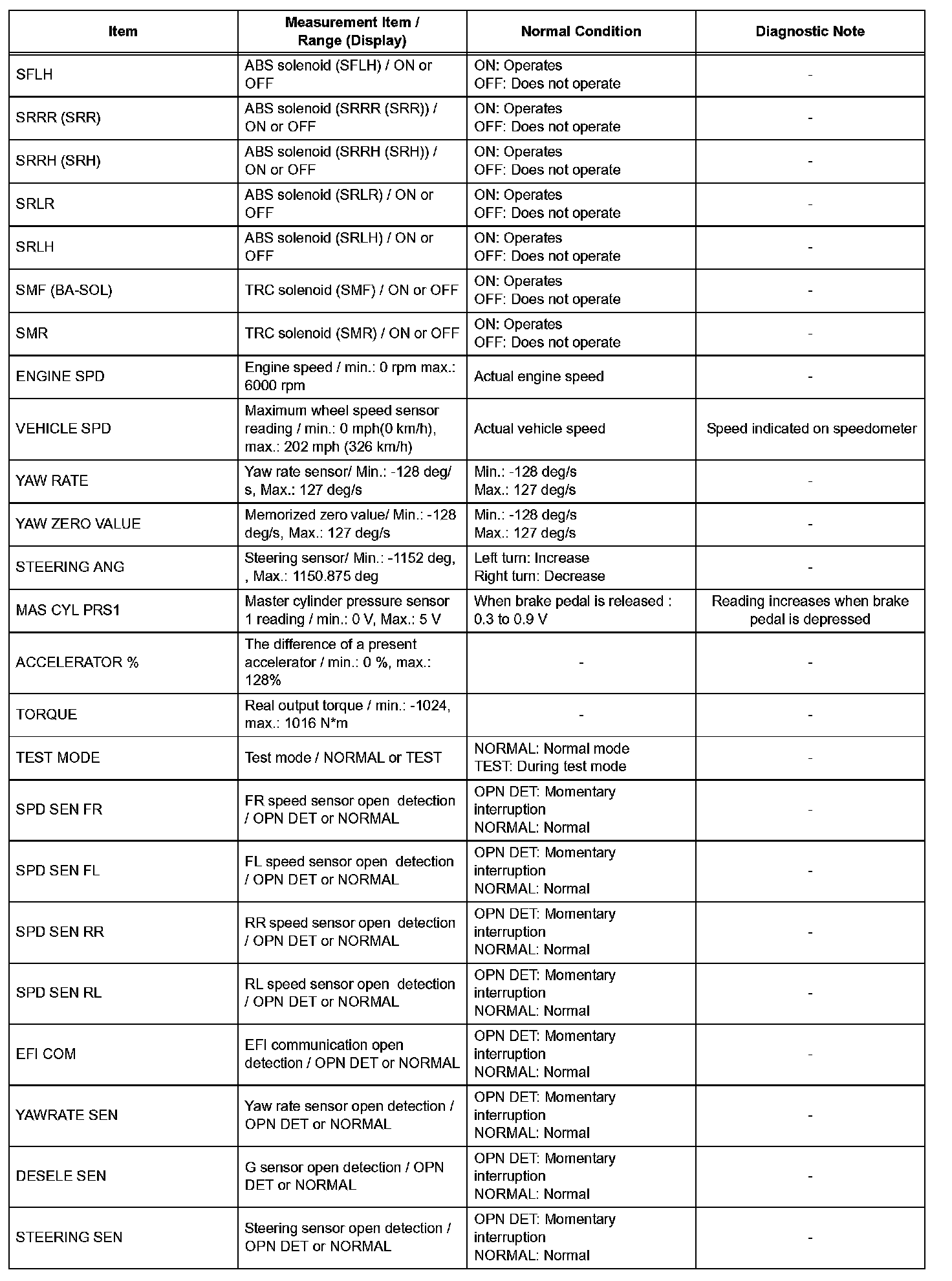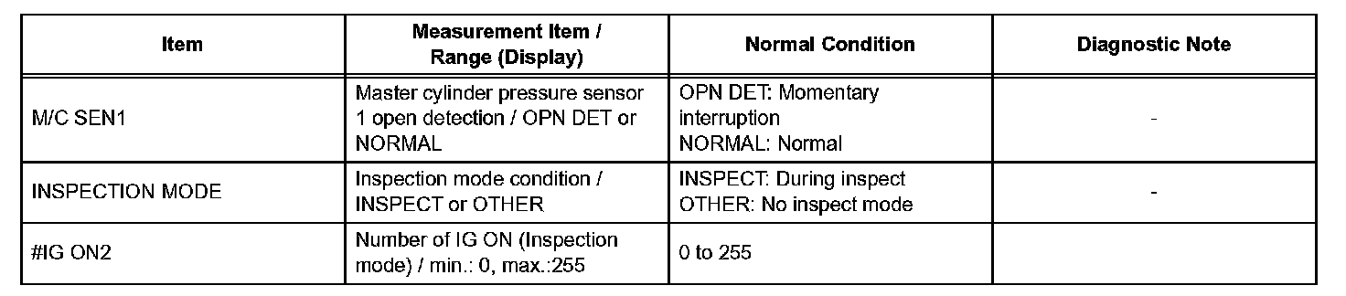 HINT: With the intelligent tester connected to the DLC3 and the ignition switch on (IG), the ABS, TRAC and VSC data list can be displayed. Follow the prompts on the intelligent tester screen to access the DATA LIST.