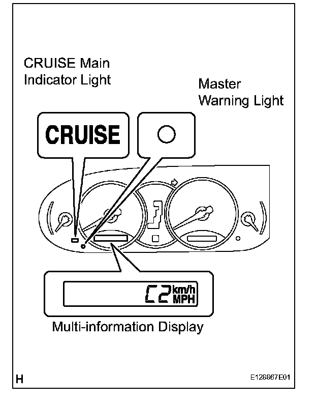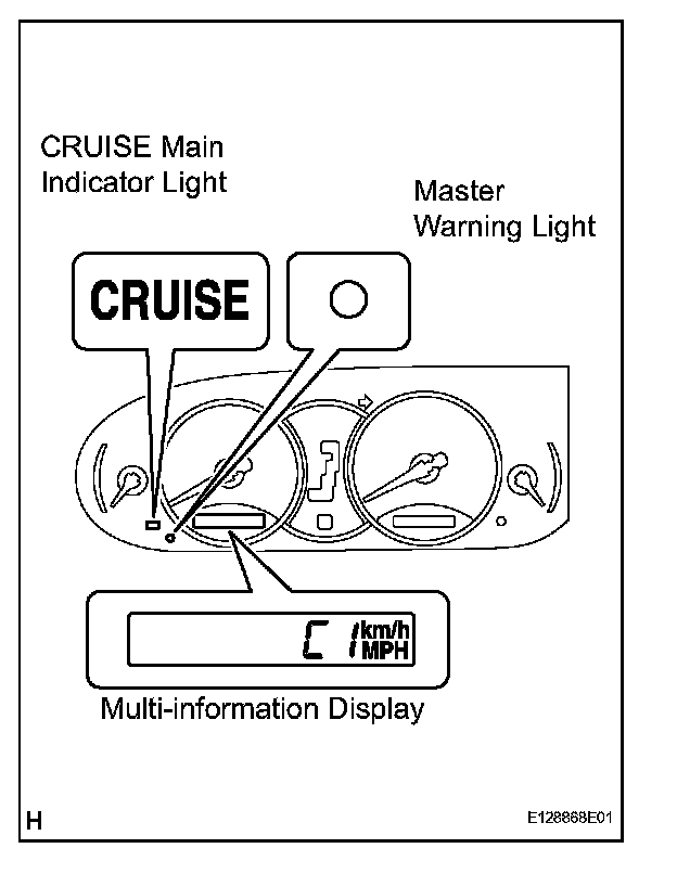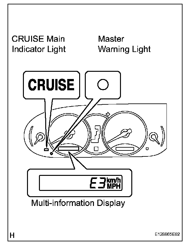 a. The CRUISE main indicator light keeps blinking until the main switch is turned off, the master warning light comes on with a popping sound, and the display shows "E3". The cruise control operation is suspended until turning the main switch ON again. The auto cancel function deletes the stored vehicle speed and cancels the cruise control operation in the following conditions.