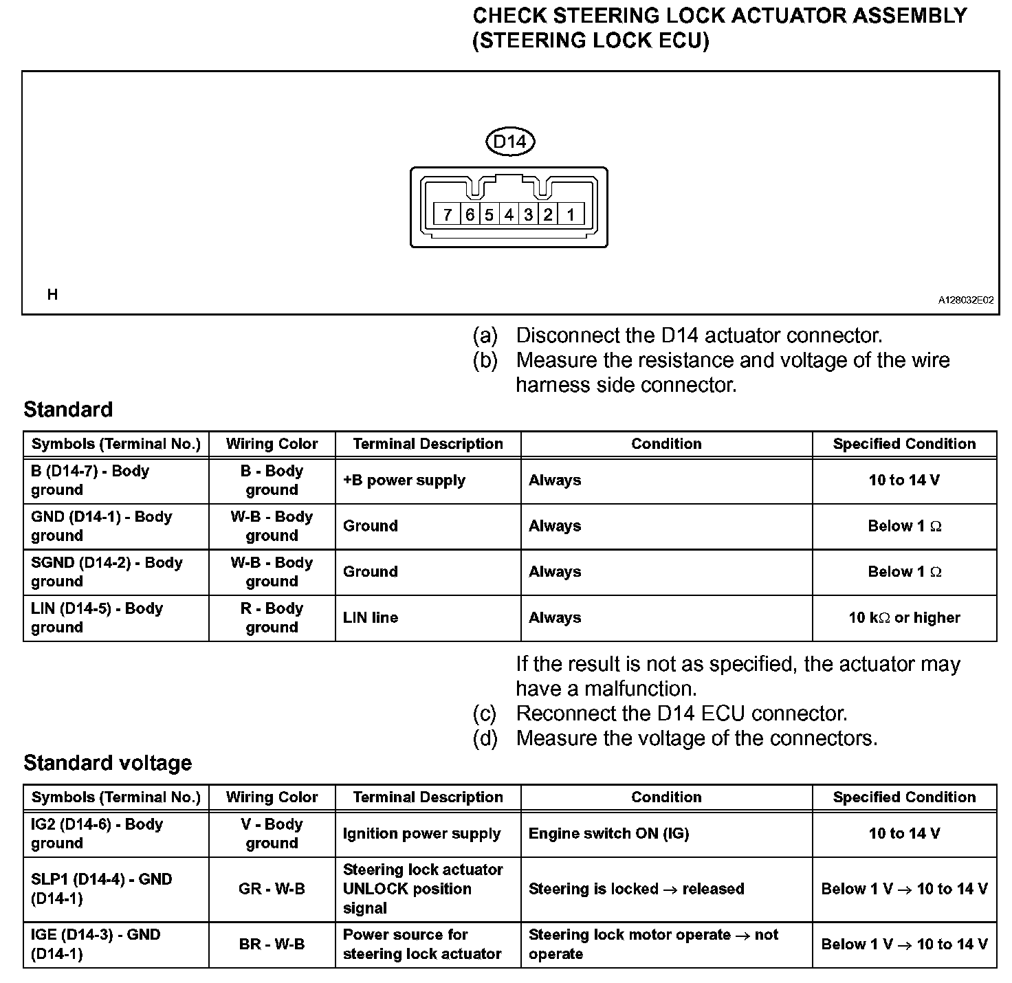 Terminals Of Control Module/Pinouts - Steering Lock ECU: