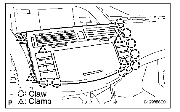a. Release the 8 claws and 5 clips and instrument cluster finish panel sub-assembly center.