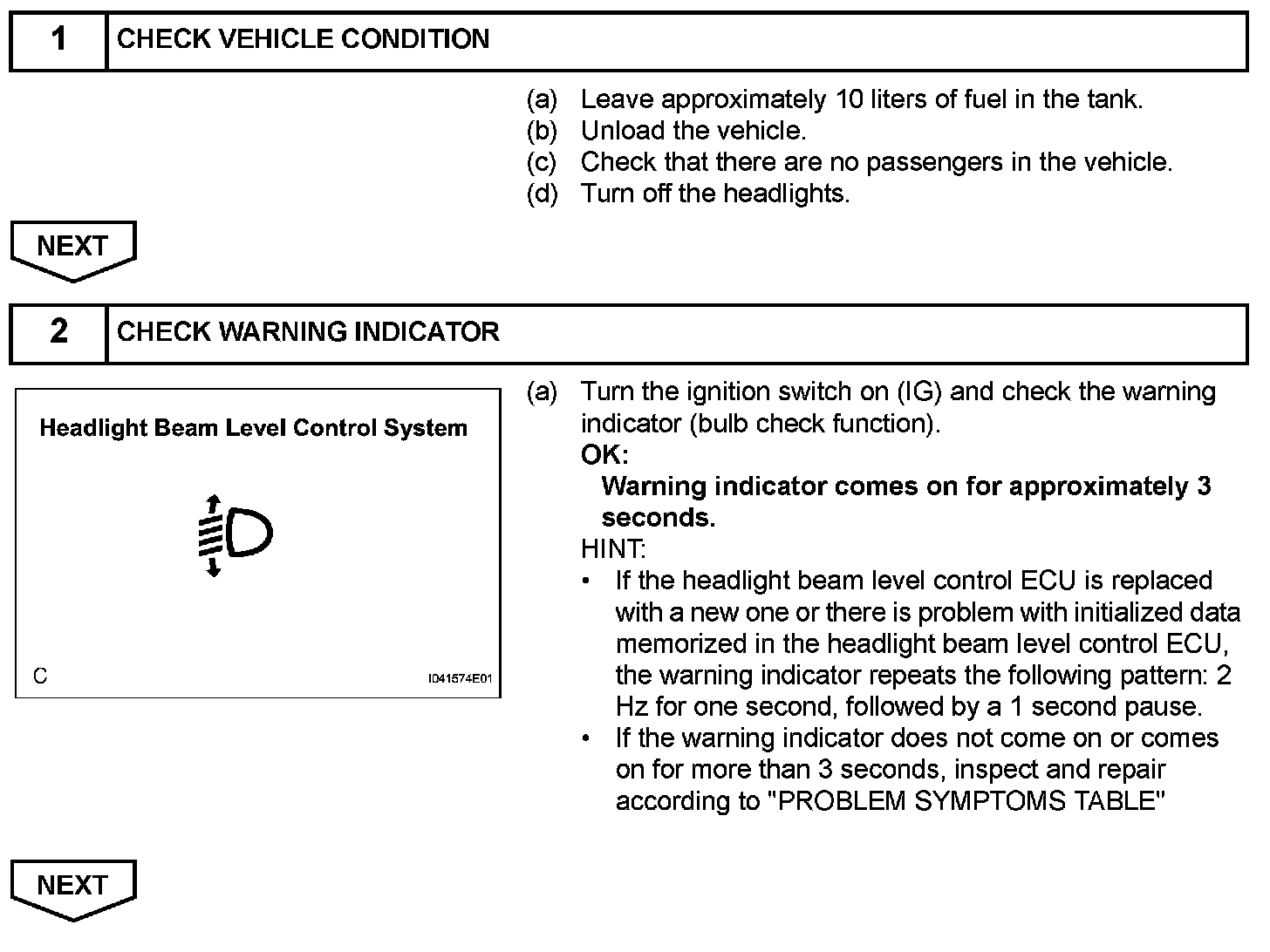 - Adjust the headlight aim after initializing the headlight beam level control ECU.