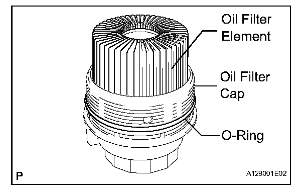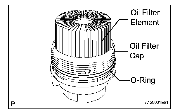 (f) Remove the oil filter element and O-ring from the oil filter cap.
