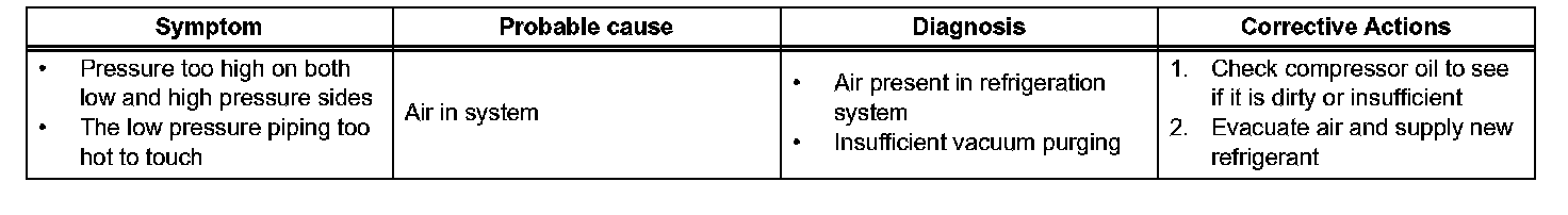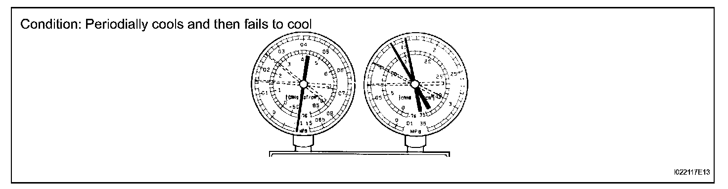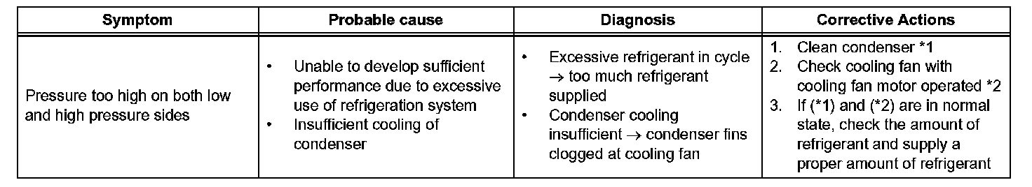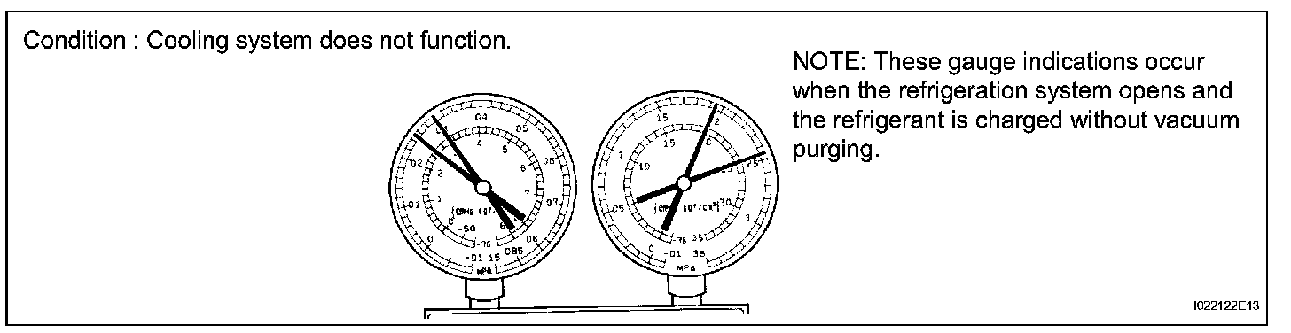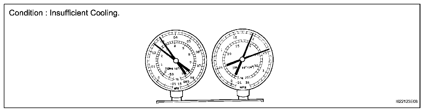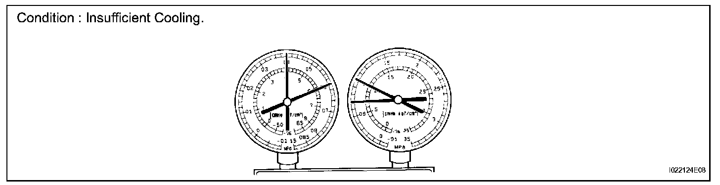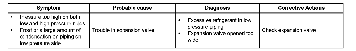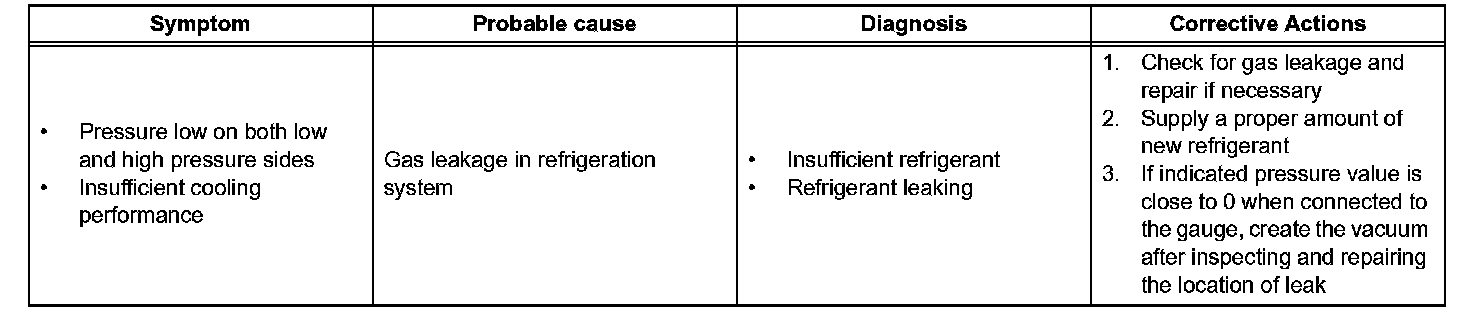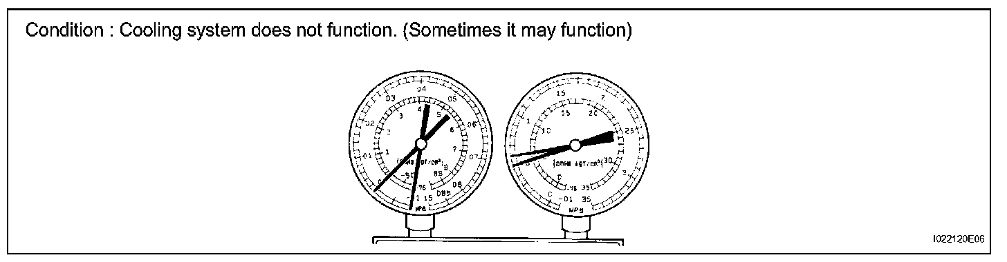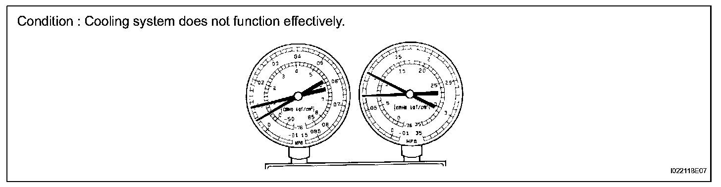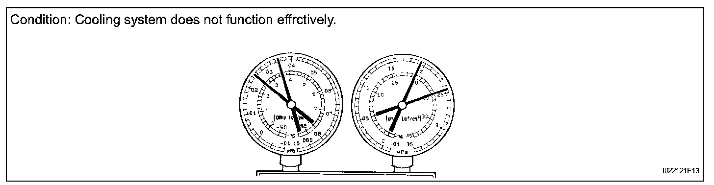 a. This is a method in which trouble is located by using a manifold gauge set. Read the manifold gauge pressure when the following conditions are established.