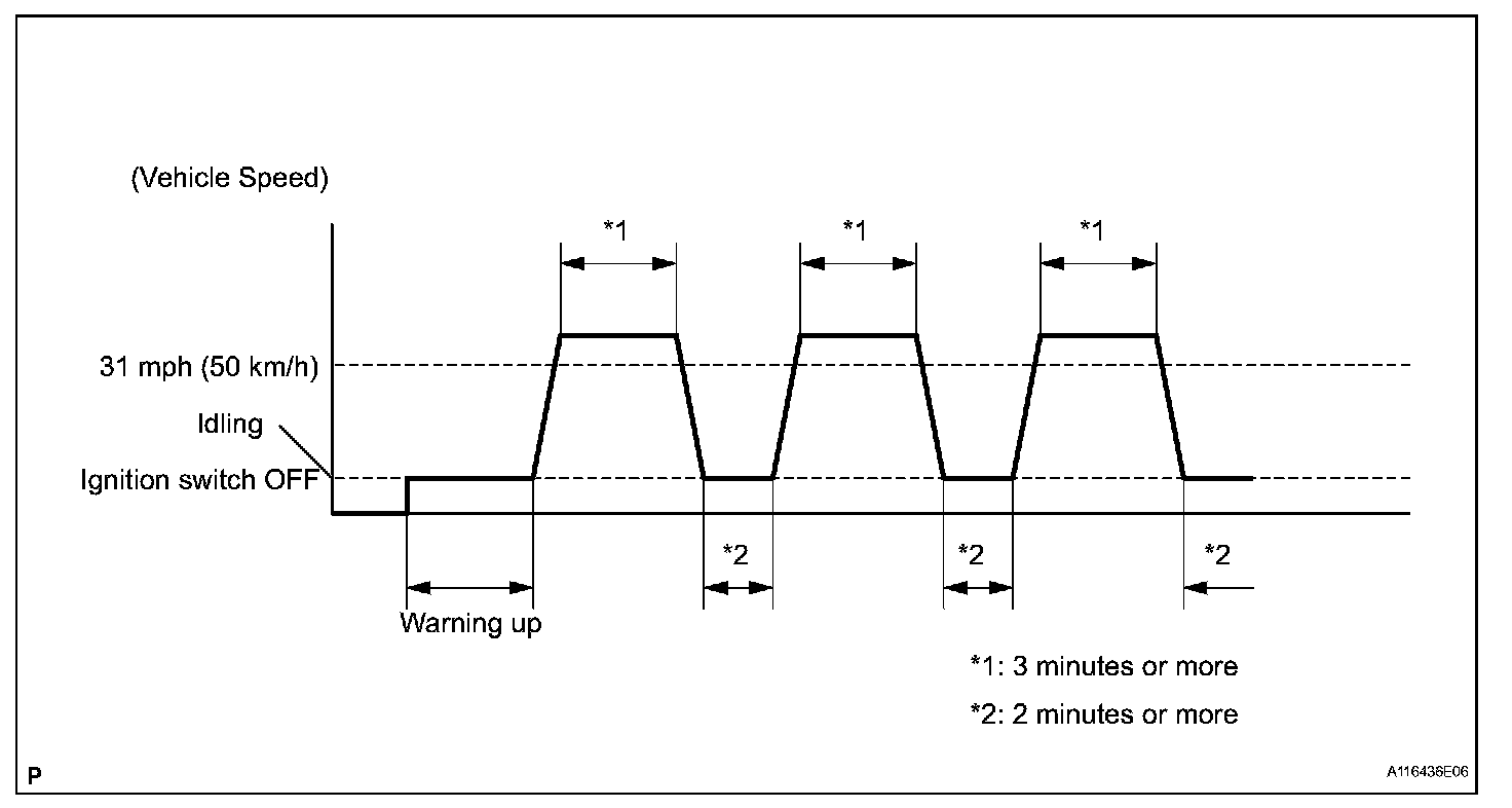 6. Drive the vehicle at 31 mph (50 km/h) or more for 3 minutes or more. *1