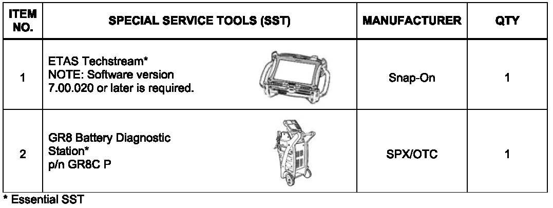 ^ For details on how to use the GR8 Battery Diagnostic Station, refer to the GR8 Battery Diagnostic Station Instruction Manual located on ETAS/TIS library > Tools > tools and equipment > GRB Battery Diagnostic Station Instruction Manual.