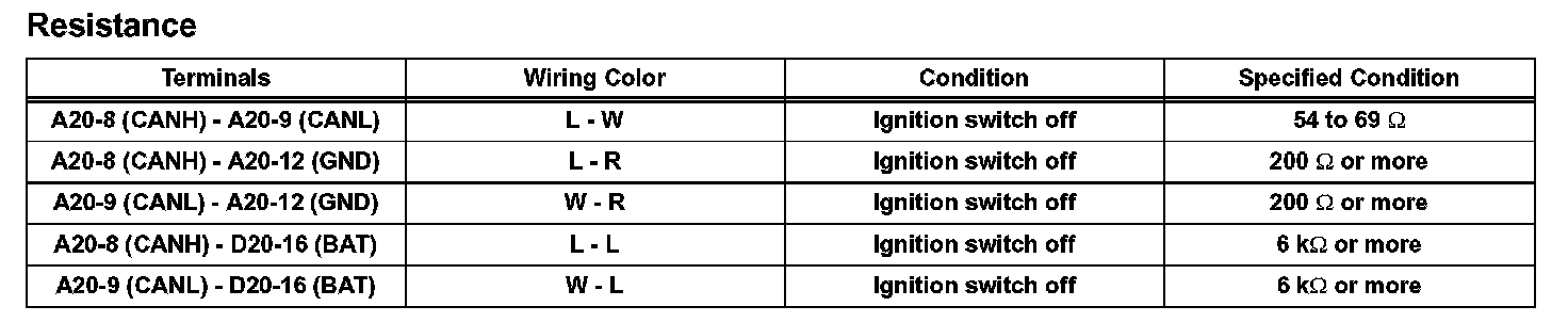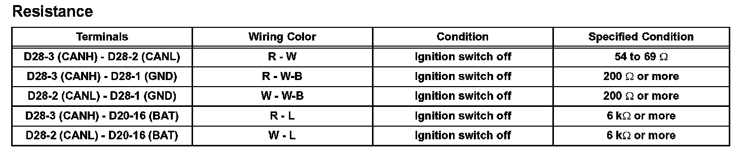 a. Measure the resistance according to the value(s) in the table.