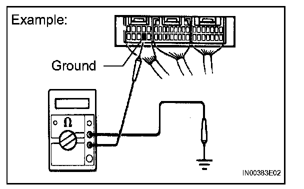 1. Measure the resistance between the ECU ground terminal and body ground.