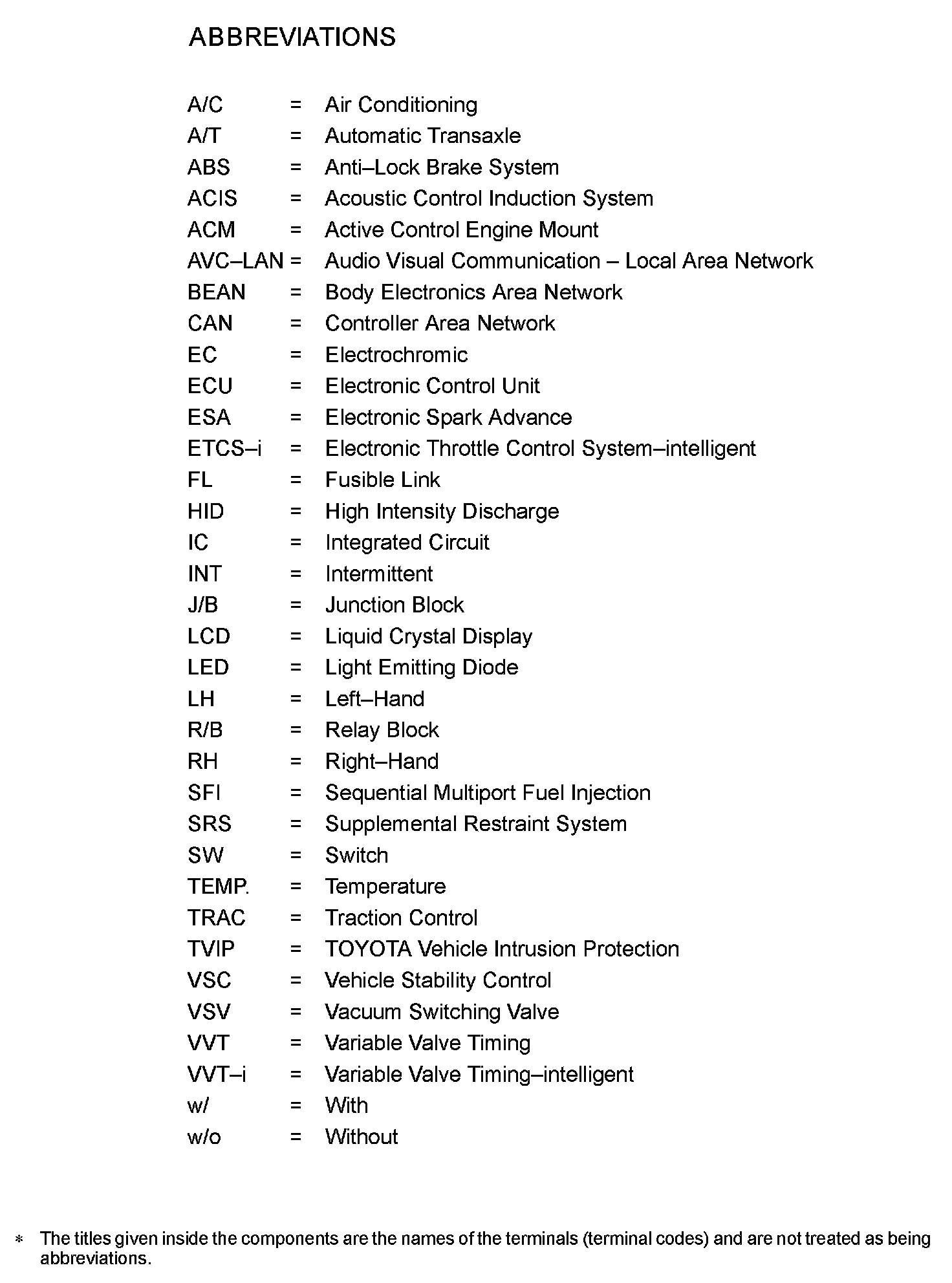 Abbreviations Used Within Diagrams