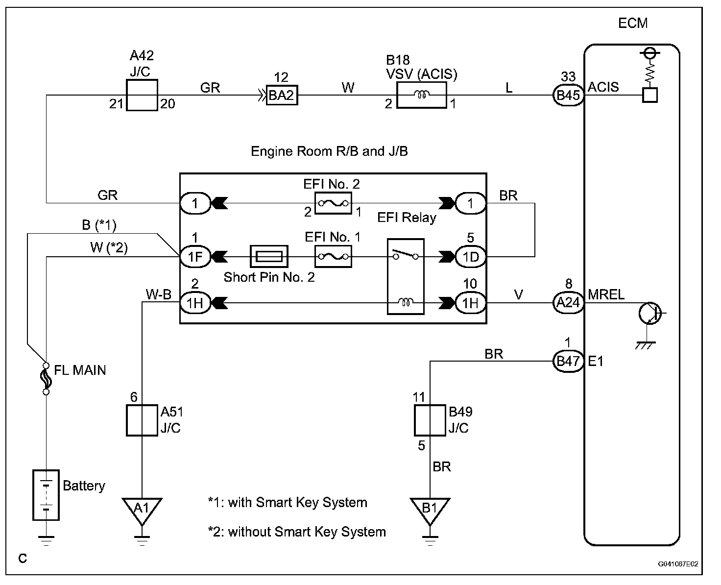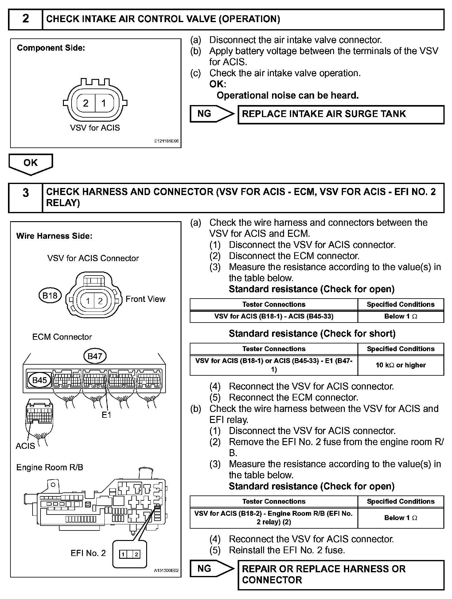 This circuit opens and closes the Intake Air Control Valve (IACV) in response to changes in the engine load in order to increase the intake efficiency (ACIS: Acoustic Control Induction System).