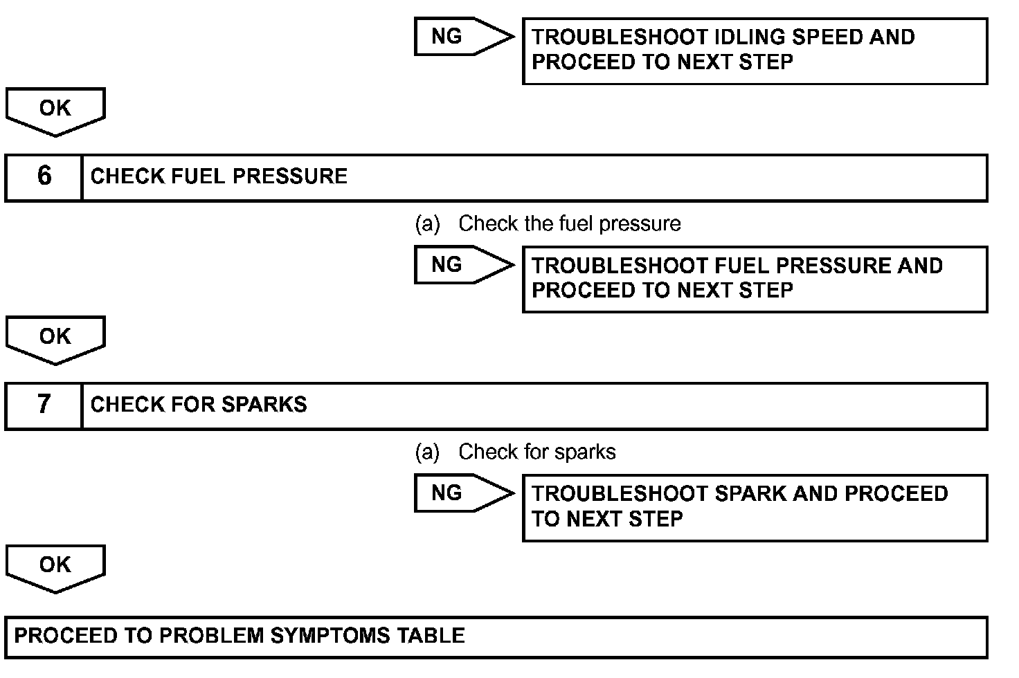 When a malfunction is not confirmed by the DTC check, troubleshooting should be carried out in all circuits considered to be possible causes of the problem. In many cases, by carrying out the basic engine check shown in the flowchart, the location of the problem can be found quickly and efficiently. Therefore, using this check is essential when engine troubleshooting.
