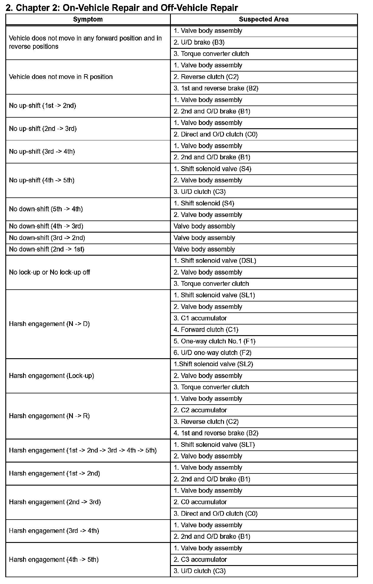2. Chapter 2: On-Vehicle Repair and Off-Vehicle Repair