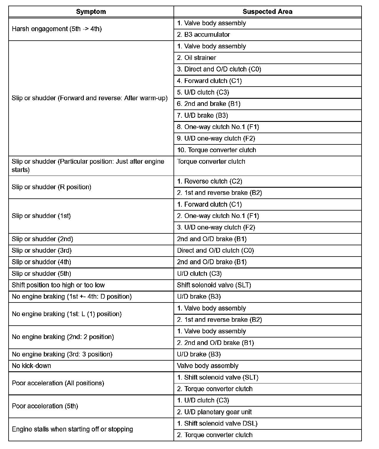 Refer to the table when the trouble cause is considered to be electrical the instruction "Proceed to next circuit inspection shown on matrix chart" is given in the flow chart of each circuit, proceed to the circuit with the next highest number in the table to continue the check. If the trouble still occurs even though there are no abnormalities in any of the other circuits, check and replace the ECM.