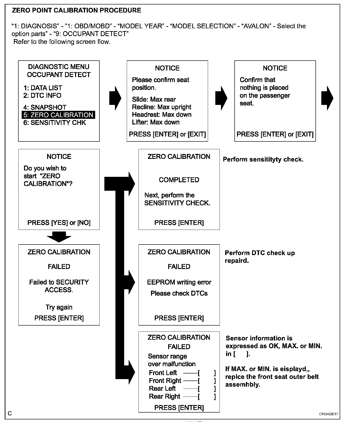 - When zero point calibration has not finished normally, replace the front seat assembly RH.
