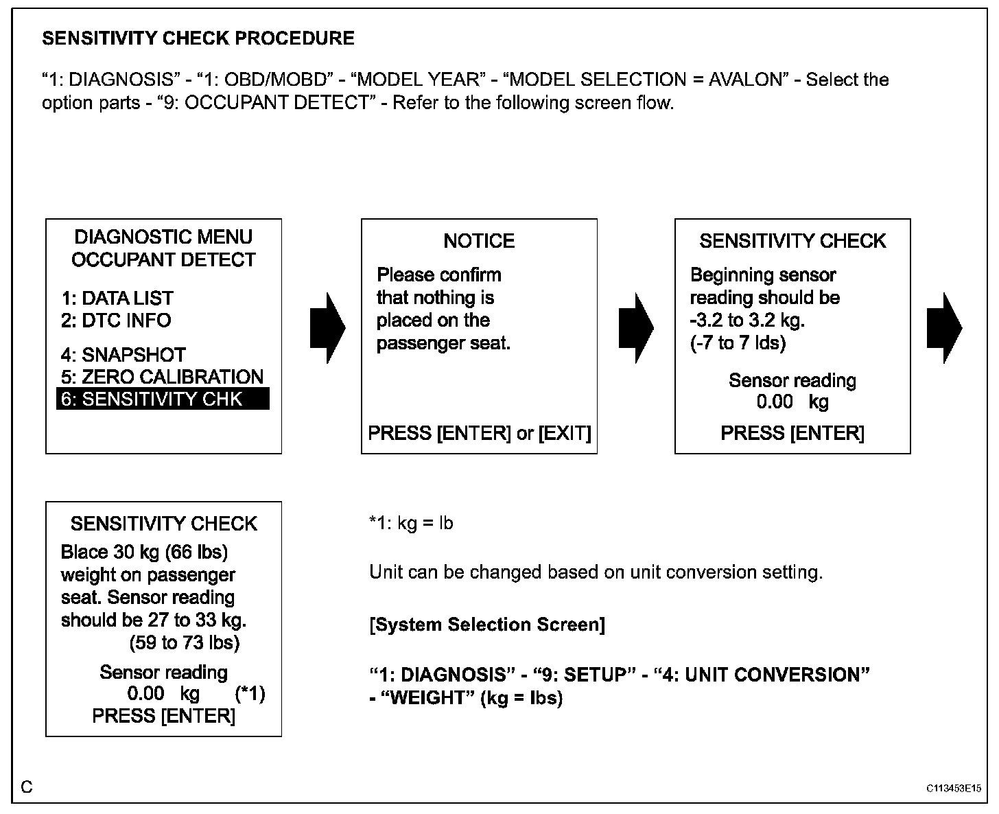 6. Confirm that the beginning sensor reading within standard value.