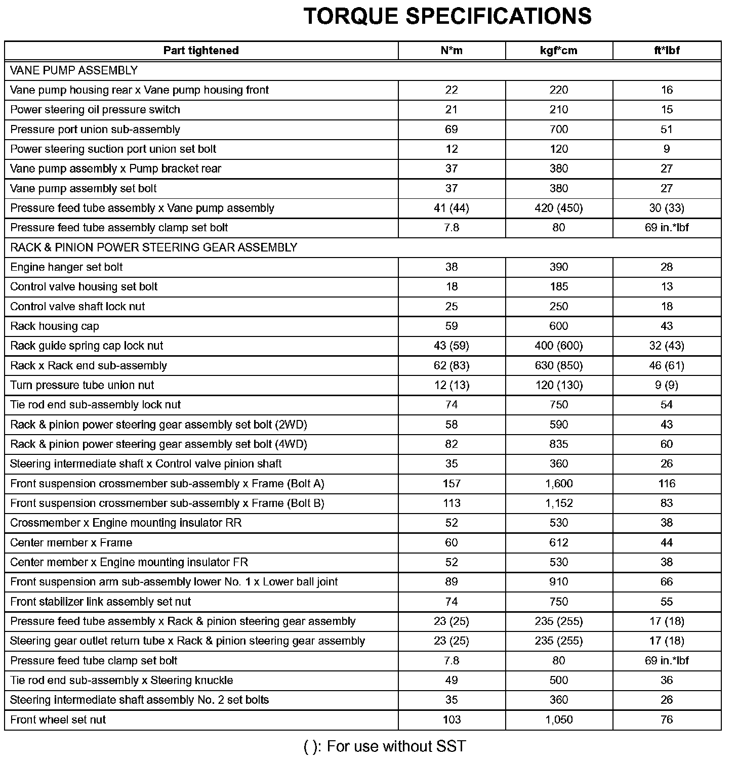 Power Steering - Torque Specifications: