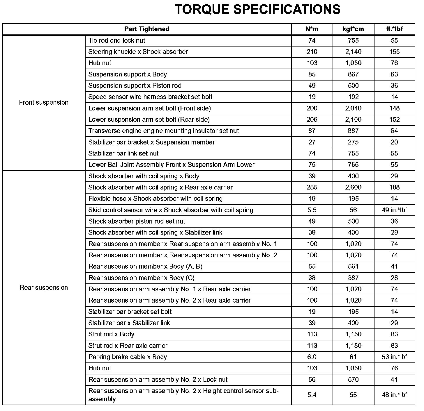 Suspension - Torque Specifications: