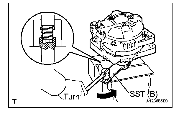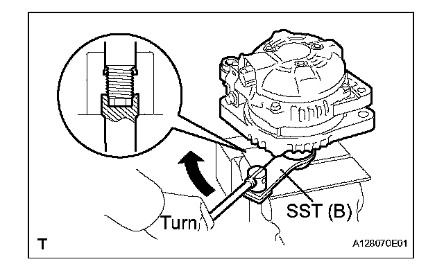 c. Turn SST (B) counterclockwise, and tighten the generator pulley.