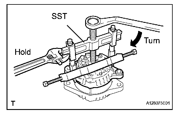 d. Turn SST (B) clockwise, and loosen the generator pulley.