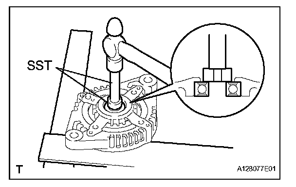 b. Using SST and a hammer, tap out the generator drive end frame bearing.