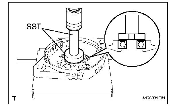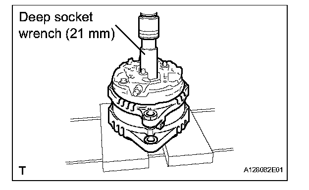 a. Using deep socket wrench (21 mm) and a press, slowly press in the generator coil assembly.