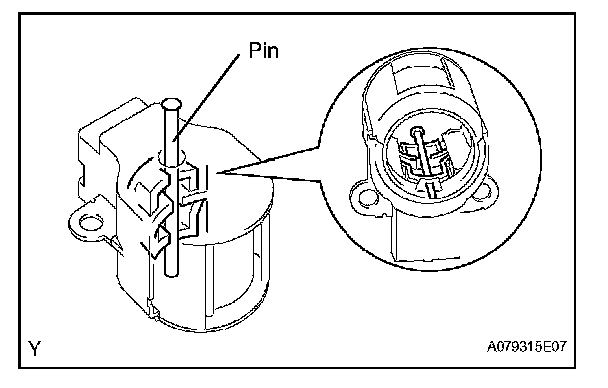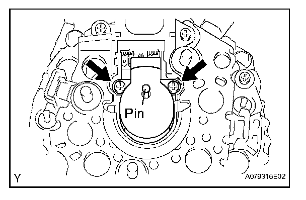 a. While pushing the 2 brushes to the inside of the generator brush holder assembly, insert a dia 1.0 mm (0.039 in.) pin into the generator brush holder hole.