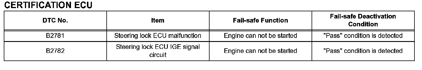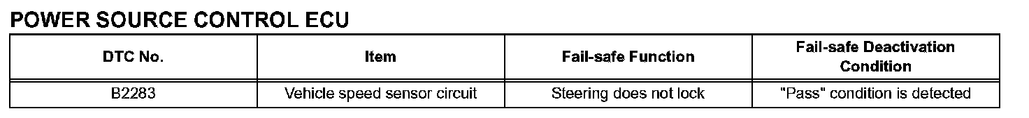 If any of the given codes is recorded, the power source control ECU enters the fail-safe mode.