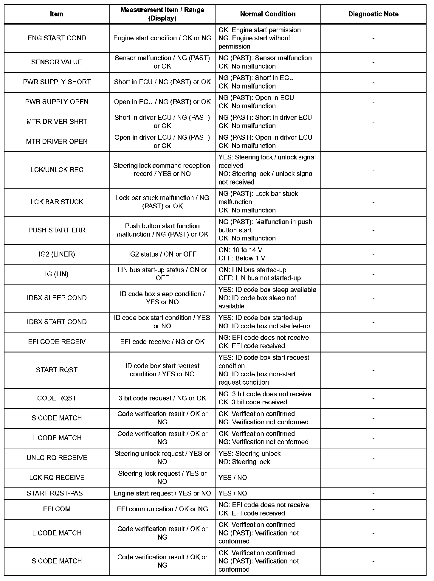 DATA LISTHINT: By accessing the DATA LIST displayed on the intelligent tester, you can perform such functions as reading the values of switches and sensors without removing any parts. Reading the DATA LIST is the first step of troubleshooting and is one method to shorten labor time.