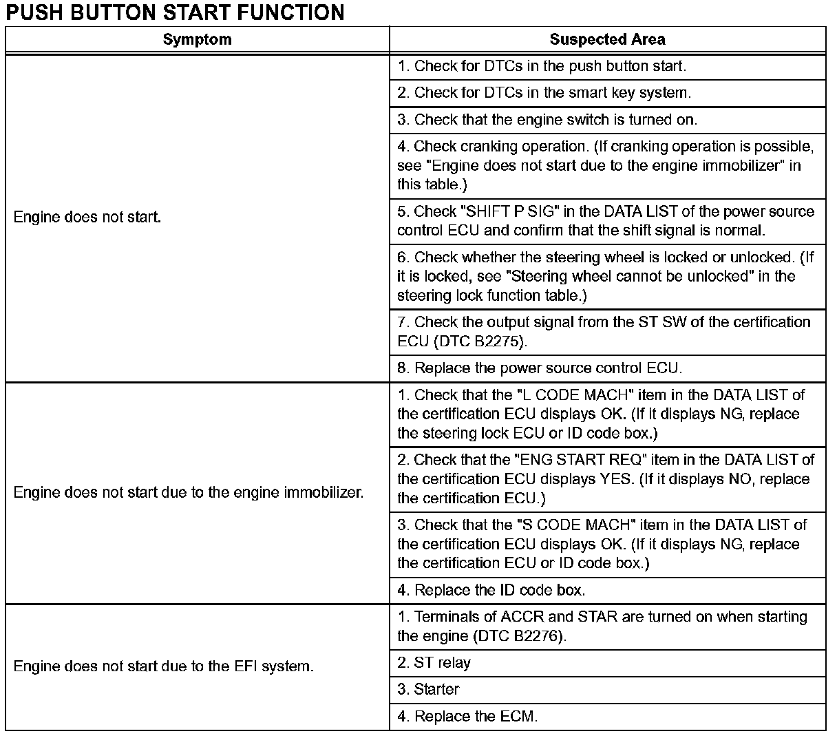 Problem Symptoms Table-Push Button Start Function (Part 2):