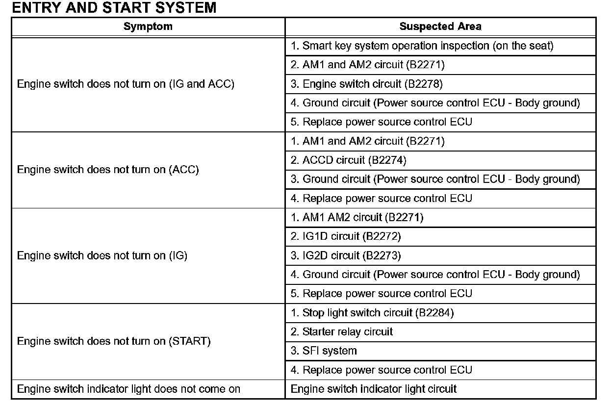 If a normal system code is displayed during the DTC check but the problem still occurs, check the circuits for each problem symptom in the order given in the table and proceed.