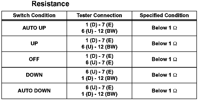 Power Window Switch: Testing and Inspection