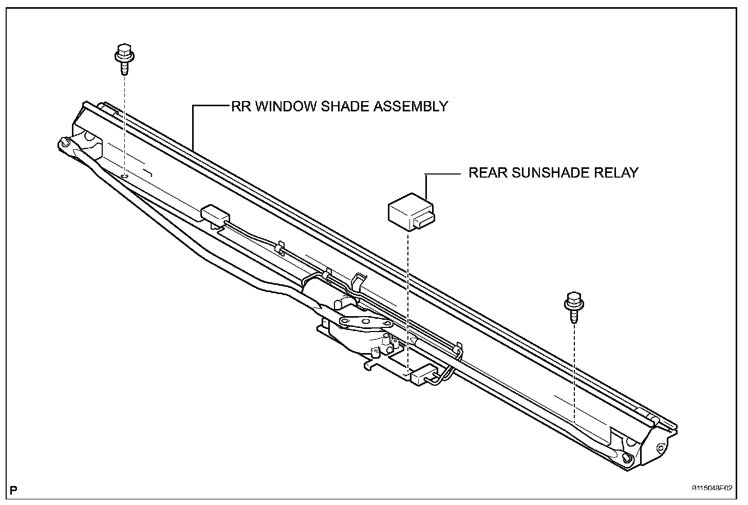 a. Remove the 2 bolts and the RR window shade assembly.