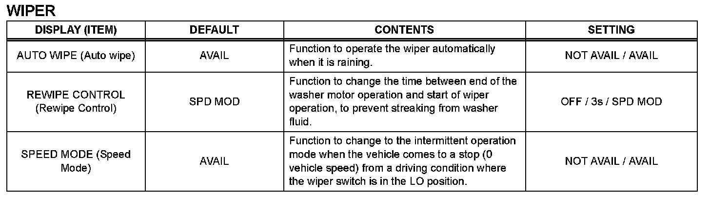 WIPER AND WASHER SYSTEMHINT: The given can be customized.