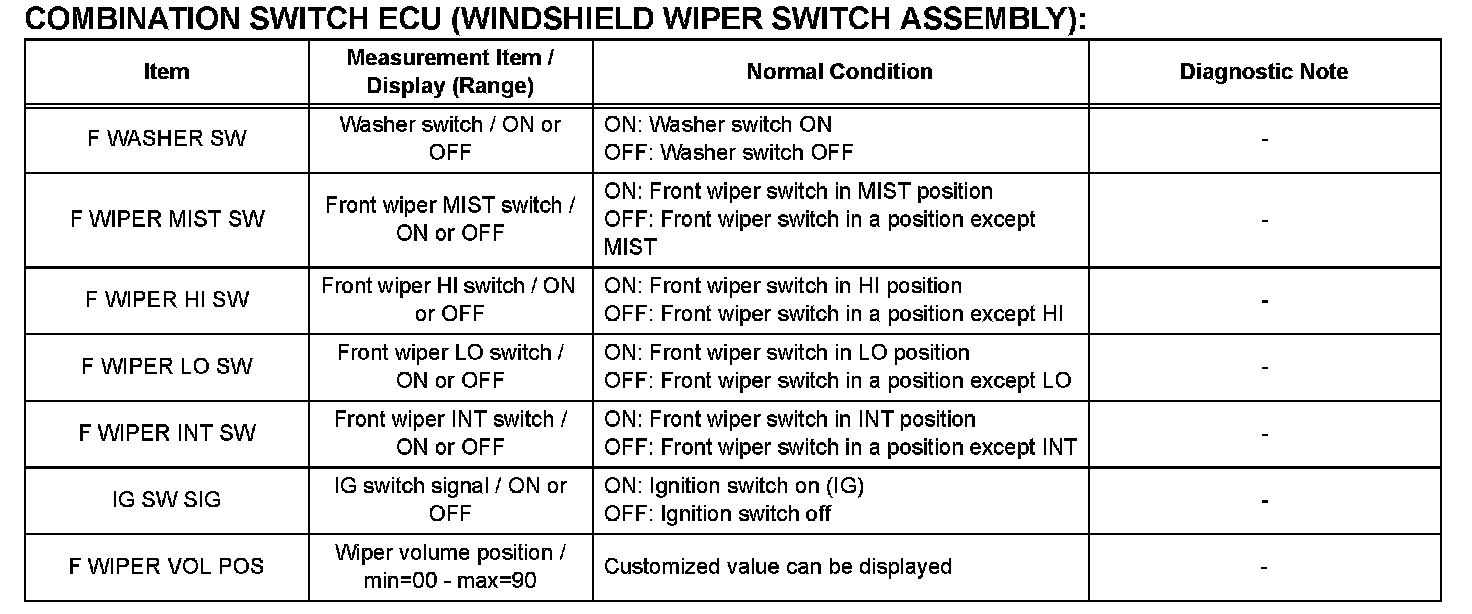 DATA LISTHINT: Using the DATA LIST displayed on the intelligent tester, you can read the values of the switches, sensors, actuators, etc. without removing any parts. Reading the DATA LIST as the first step in troubleshooting is one of the methods to shorten labor time.