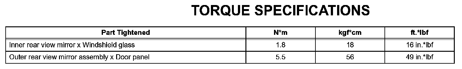 Mirror - Torque Specifications: