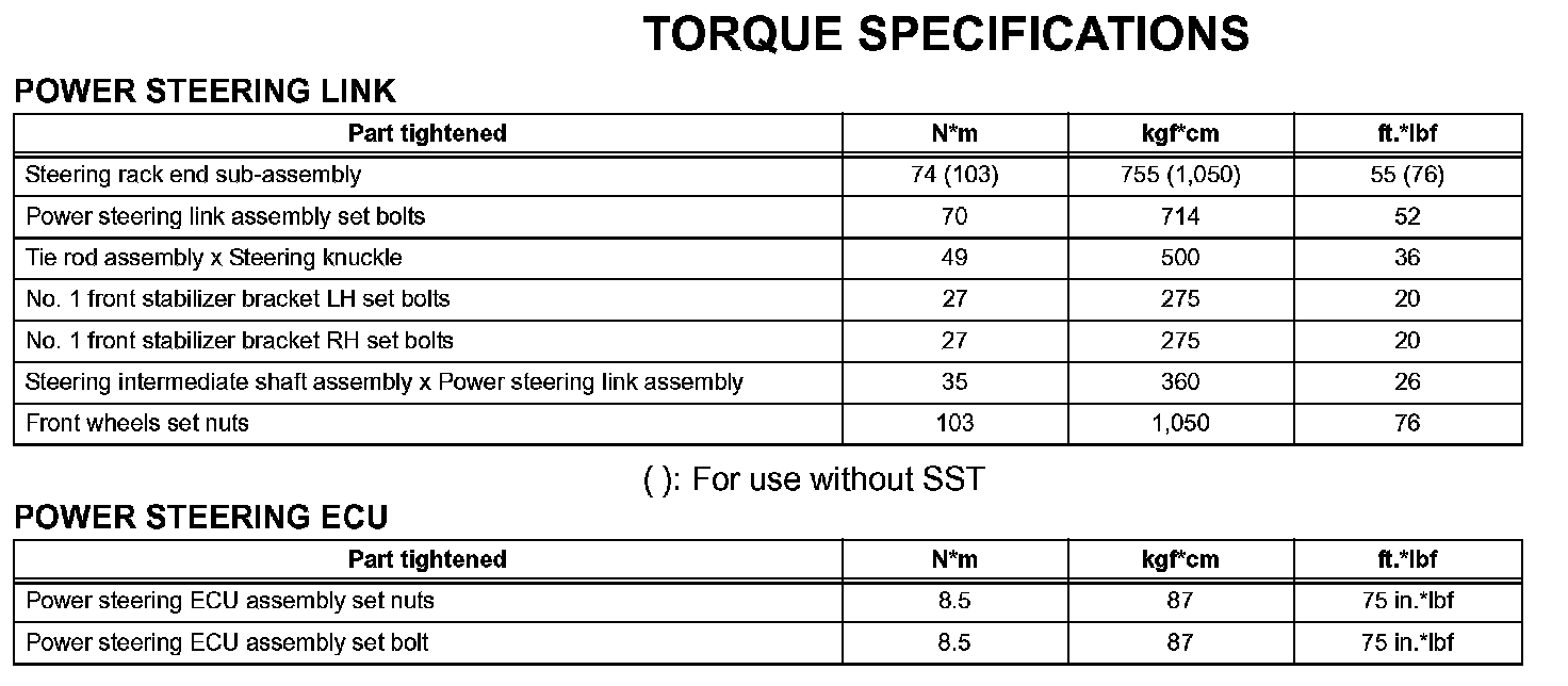 Power Steering - Torque Specifications: