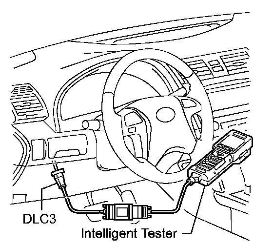 (b) Connect the intelligent tester to the DLC3, then turn the ignition switch on (IG).