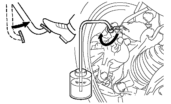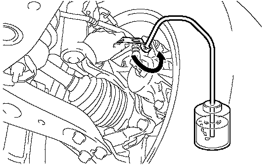 NOTICE: Bleed the air from the brake line of the wheel furthest from the master cylinder.