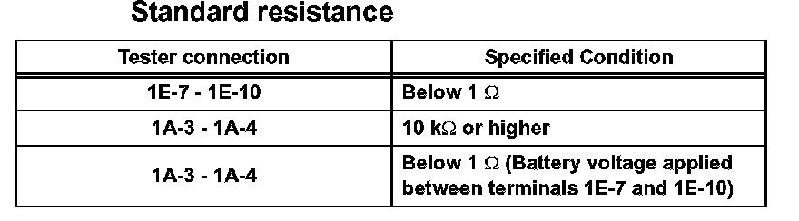 Using an ohmmeter, measure the resistance according to the value(s) in the table.
