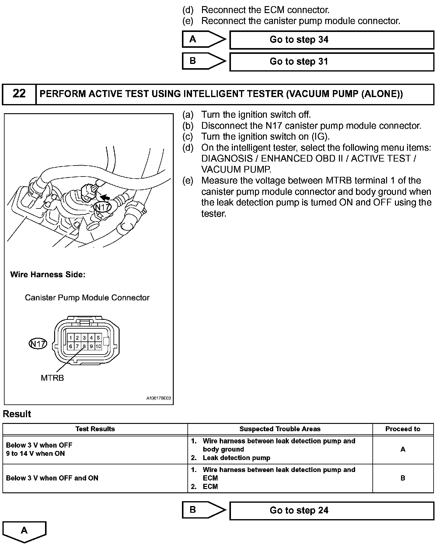 NOTE: The intelligent tester is required to conduct the following diagnostic troubleshooting procedure.