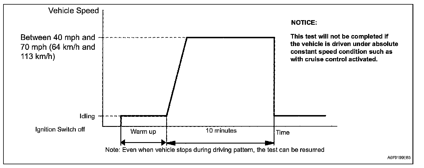 To ensure completion of the Readiness Monitors, avoid sudden changes in vehicle load and speed (driving up and down hills and/or sudden acceleration).