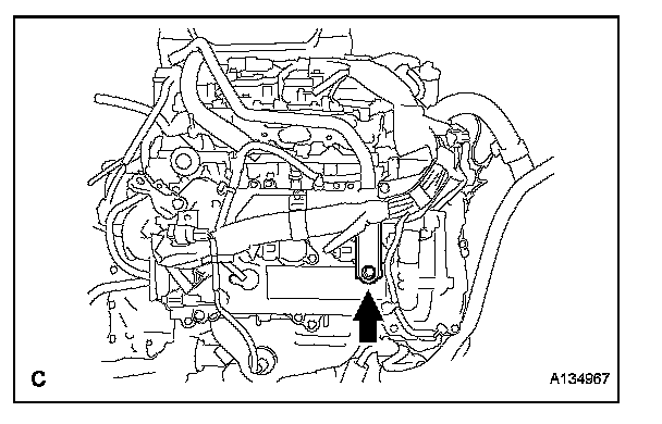 b. Remove the bolt and No. 1 surge tank stay.